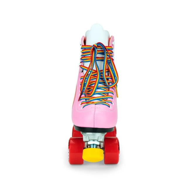 The Rainbow Rider features a reliable boot made of vinyl uppers (VEGAN!) and a padded, soft lining that is comfortable to the skin for a supportive and care-free stride.Β Rainbow-themed graphics and a no-maintenance PVC outsole round out the boot, which is attached to a durable die-cast aluminium plate, soft outdoor wheels, ABEC-5 bearings, and an adjustable toe stop to ensure a smooth, cruiser-friendly ride.Β